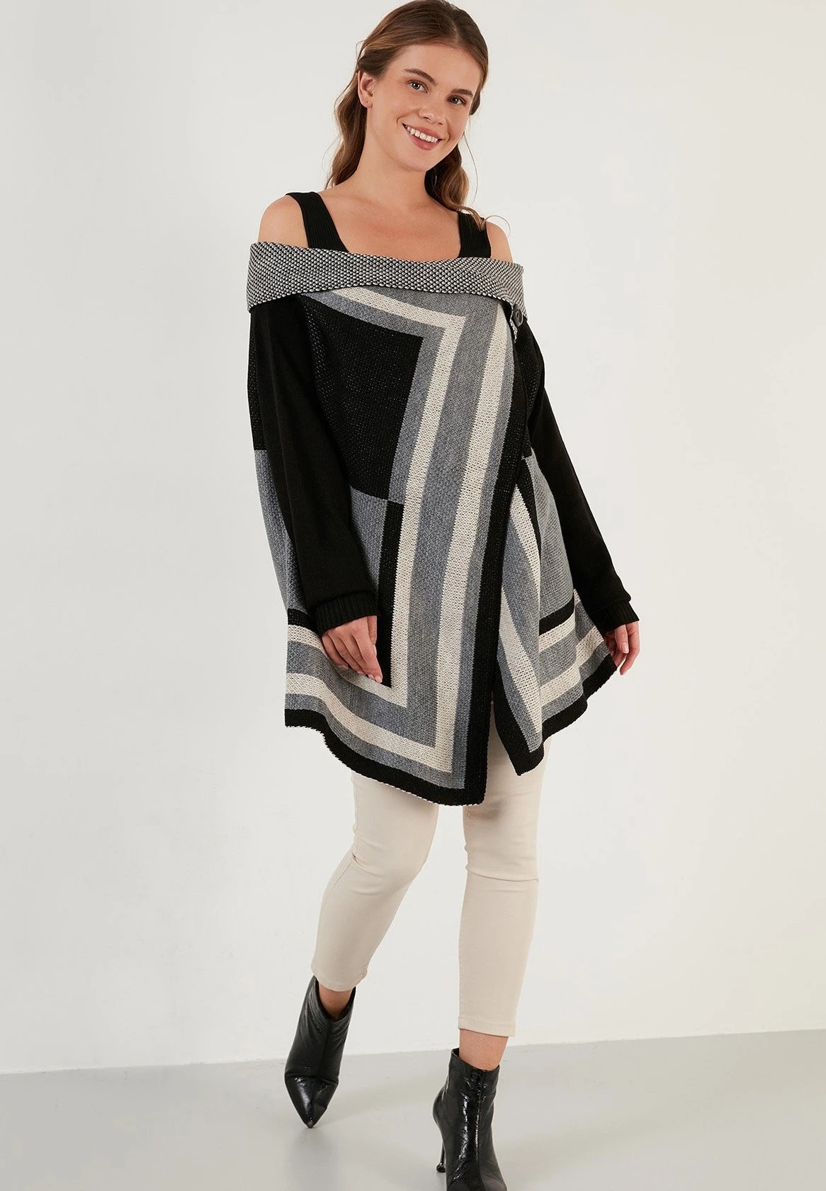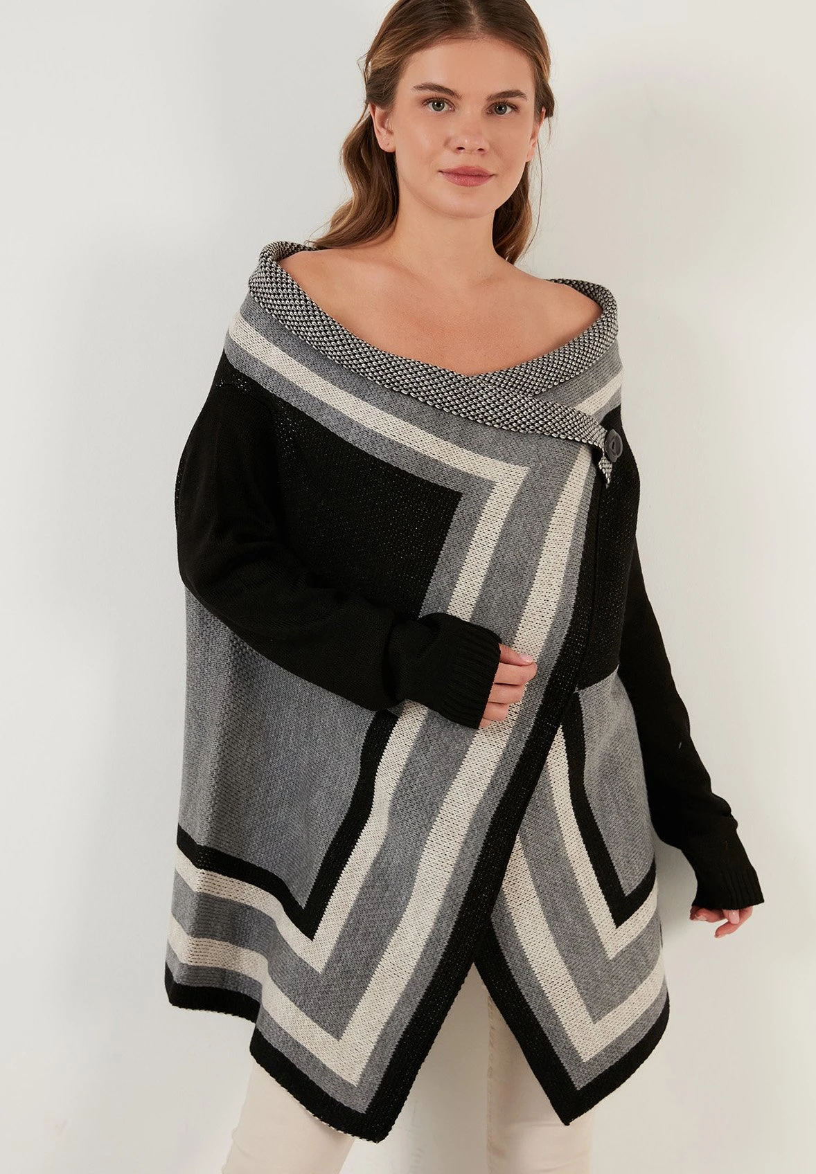 LELA Regular Fit – Cardigan – Black/Grey/Mink